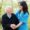 Patient in a wheel chair with a nurse.
